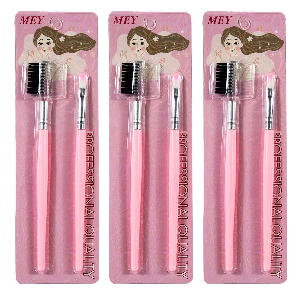 3 Kits De 2 Pincéis de Maquiagem Escovinha Pente Para Sobrancelha e Pincel Rosa