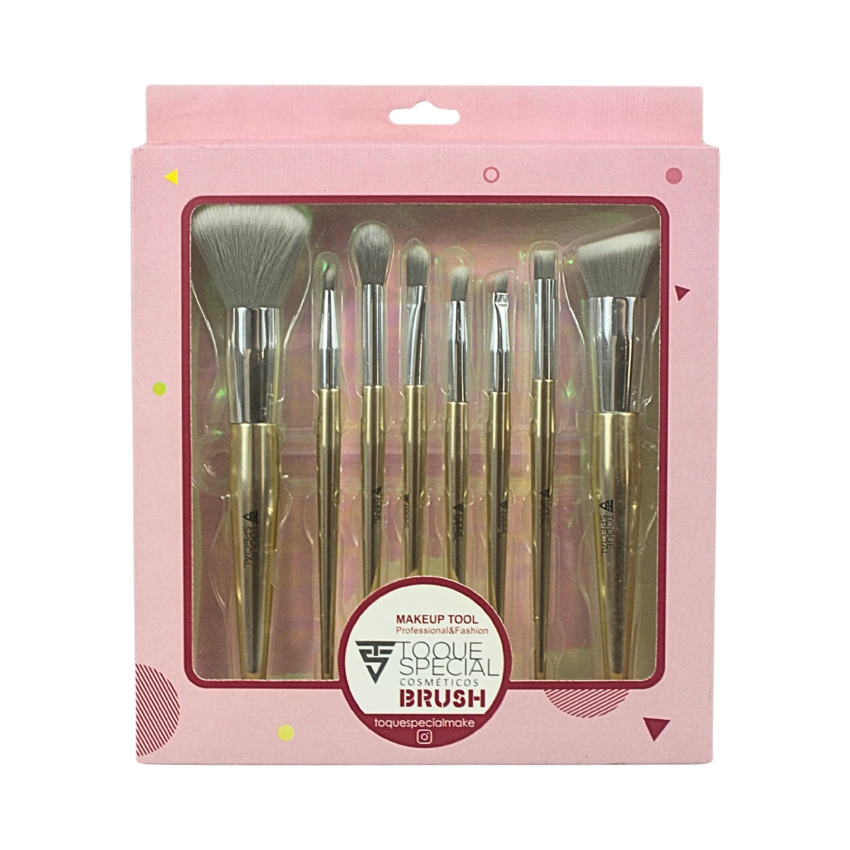 Kit com 8 Pincéis para Maquiagem Toque Especial Dourado – Profissional