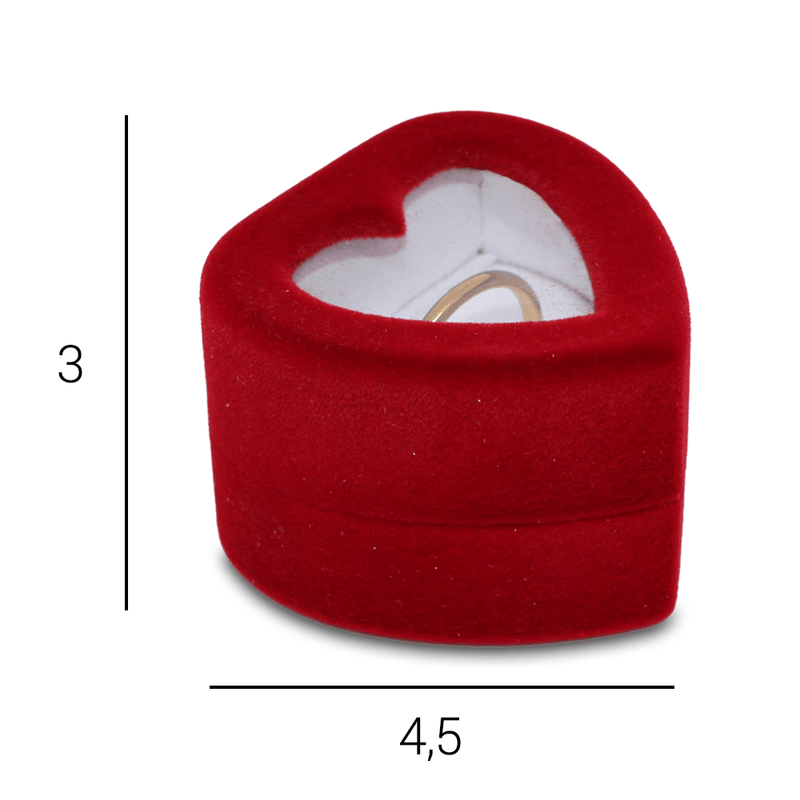 Caixinha de Veludo Para Anel Formato Coração Com 1 Fenda