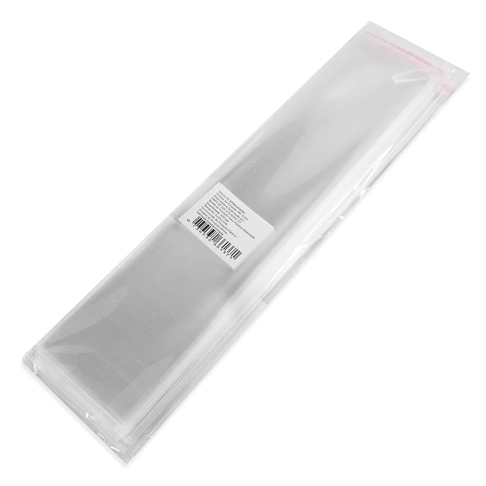 100 Unidades saco Plástico Adesivado Sem Solapa 6x25+3 cm Sacos plásticos adesivados, fazem toda diferença na organização, utilizado para armazenamentos em geral, facilita muito no dia dia, utilizado em peças, roupas, presentes, bijuterias. Instruções de uso - Retire a fita da aba para colar a superfície, fechando o envelope. Especificações: -Dimensões:6x25+3 centímetros (largura x comprimento + Aba Adesiva) - Quantidade: 100 unidades - Obitidos a partir de folhas cortadas, dobradas e seladas nas laterais por aquecimento. -Com fita adesiva que facilita o sistema abre/fecha. - Atóxico e inodoro.