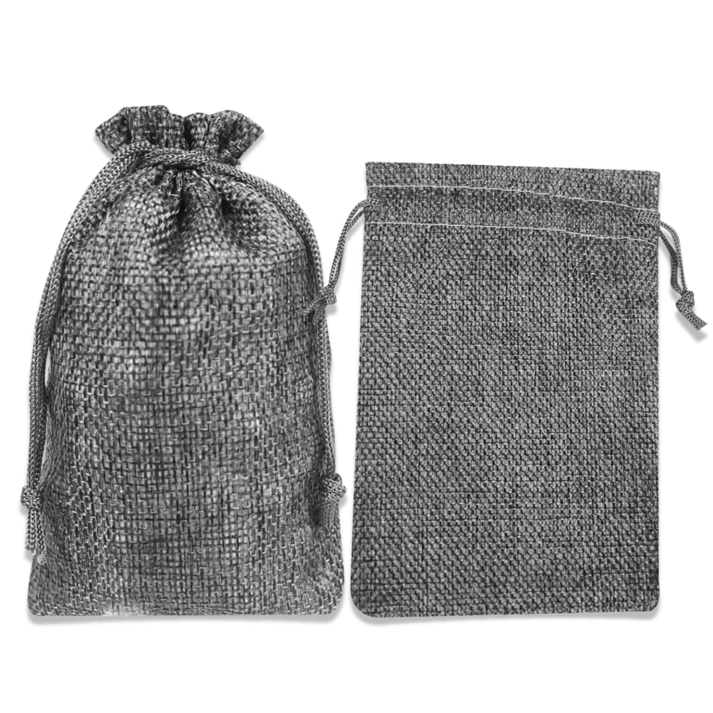 Kit com 10 Saquinhos de Juta 10x15 cm Cor Cinza com Cordão para Fechamento