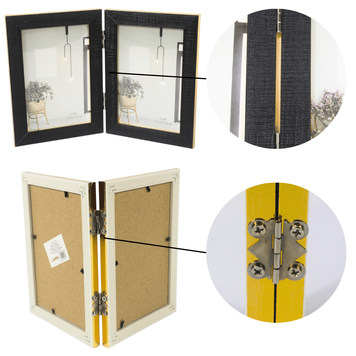 Este porta-retrato une praticidade e beleza em um só produto. Seu formato dobrável facilita o transporte e o armazenamento, enquanto o visual elegante combina com qualquer decoração. Com espaço para duas fotos 10x15 cm, é ideal para quem deseja valorizar memórias com estilo e organização.